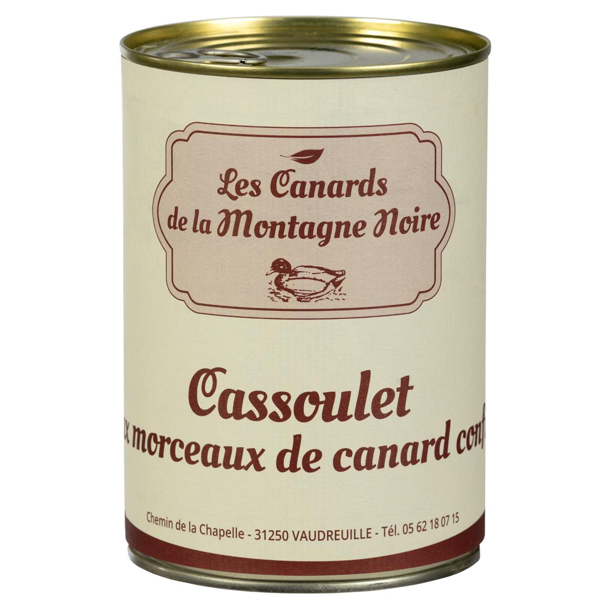 Ingrédients : haricots de Castelnaudary, confit de canard , saucisse au canard, coustellous, couenne de porc, jus de canards, sel - épices et aromates.